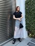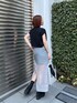 【tops】 着回し抜群トップス♡綿素材なので通気性よく夏にピッタリです!程よく腕周りもカバーしてれます◎ 【skirt】 夏トレンドのシアースカート♡折り返しされたウエストとレイヤードデザインがポイント!透け感もナチュラルなので露出感が気にならないようになってます◎156cm/S着用。 【shoes】 大人気のソックブーツ♡厚底なのに軽くて履きやすく、スタイルアップ効果抜群です!24.0cm,甲高,幅広の私で24.5cm着用。