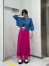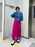 jouetieらしいカラーリングのカーディガンと流行りのメッシュ素材のスカートを合わせたコーディネート。 ローファーを白にする事でより春らしい爽やかなスタイリングに。 ビビット×ビビットな組み合わせも、ピンクの色味を合わせる事でまとまった印象に! スカートは体のラインを拾いにくいシルエットなので、骨盤や下半身が気になる骨格の方も綺麗に履いて頂けます!