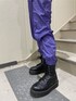 パープルのトラックパンツにレオパードのキャミとジャケットライクなシャツを合わせたMIXコーデ。 メンズライクなナイロン生地のジョガーパンツにあえて綺麗目なシャツを合わせる事で大人カッコいいスタイリングに。 トラックパンツはベルトが付属で付いており、ウエストマークされるのでスタイルUPでき、裾もゴムになっているので低身長さんも安心して履いていただけます! ブラウスは丈間肩幅がジャストサイズで作られているので、ジャケットのようなかっちり感がでます!デニムやスカート合わせはもちろん、あえてメンズライクなジョガーパンツやジャージパンツとの組み合わせもおすすめです!