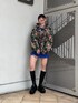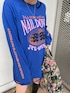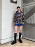 高級感のあるゴブラン生地を使用したチャイナジャケットが主役のコーデ🐼💜 ブルーのカラーはブラックが入っているのではっきりとした色のアイテムやブラックの小物で締めるのがおすすめです🌟 シャツジャケットのような軽い羽織り心地で春先の主役アウターになる事間違い無しです! ゆったりサイズでオーバーサイズのニットやトレーナーを着込んだり、上からアウターを羽織ってトップスのようにも着れるので冬の時期から沢山活躍してくれます🙌 インナーのtシャツはダメージ加工が可愛く、トレーナーの下に着たりとレイヤードスタイルにも使える優れもの! ブーツは軽くて歩きやすく美脚効果抜群です😳