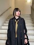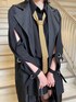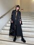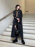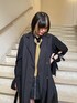 トレンチコートのジレにブラウスを重ねたレイヤードコーデ🖤 ブラックコーデの差し色に黄色のネクタイをプラスしてみました💫 オールブラックと素材感でモードな雰囲気のあるスタイリングに✨ 全身黒ですが肌見せする事で重くなりすぎないのがポイントです!
