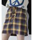 ピースマークのニットはアウターを着ても存在感抜群💫 トレンドの猫耳ニット帽を合わせて平成ムードを更にプラスしてみました🐱 ニットのロゴとスカートのチェックのブルーの配色とアウターの裏地のカラーを統一する事でまとまりのあるカラーコーデに🌈 オーバーサイズのアウターはミニ丈やスッキリしたシルエットのボトムとあわせると華奢見えします❤️🔥