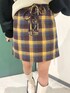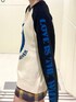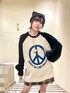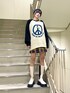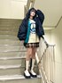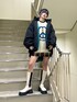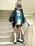 ピースマークのニットはアウターを着ても存在感抜群💫 トレンドの猫耳ニット帽を合わせて平成ムードを更にプラスしてみました🐱 ニットのロゴとスカートのチェックのブルーの配色とアウターの裏地のカラーを統一する事でまとまりのあるカラーコーデに🌈 オーバーサイズのアウターはミニ丈やスッキリしたシルエットのボトムとあわせると華奢見えします❤️🔥