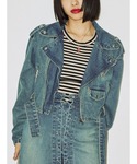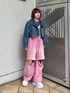 アメカジ×スポーツmixコーデ👟💞 【ジャケット】 定番アイテムのライダースジャケットをデニム素材で今季らしくアップデート🩵 いつもより短めの丈感でよりトレンド感もアップ⤴️ 黄味のあるオーバーダイ加工でヴィンテージ感MAX⚡️ ガーリーなチュールやレース、フリルアイテムと合わせて鉄板の甘辛MIXスタイリングもオススメ!! ※161cmで骨盤より少し上の丈感です。 腕周りはゆとりがあるデザインで中にも着込めます。 【カットソー】 フロントのイーグルグラフィックがインパクトを与えるロンT🦅 伸縮性のあるリブカットソーを使用したフィットシルエットと、少し広めに空いた襟ぐりが00’sムードを盛り上げてくれます! あえてフレアスカートやレースアイテムと合わせたjouetieならではの甘辛MIXスタイリングもおすすめです✨ 【レースキャミ】 レイヤードコーディネートに大活躍! ラグジュアリーな総レースのキャミソールチュニックです。 胸下高めの切り替えでスタイルアップ効果抜群🕺 カットソーやデニムなど、シンプルなコーディネートにプラスするだけでグッと春らしい装いに🌸 ボトムスにスポーティなトラックパンツやキックパンツを合わせてトレンド感MAXなMIXスタイリングもおすすめです! ※パンツにインして着ています。アジャスター付きなので長さ調節して頂けます。 【パンツ】 程よく肉感のある裏毛を使用し、ユーズドライクな風合いが出るスプレープリントの加工感を施したこだわりのスウェットパンツ。 ZIP開閉でスリット使いやレングスチェンジが出来るマルチWAYです✨ 裾にドローコードが付いているので身長問わず着ていただけます。 ※161cmでも少しダボっと着れます。 【スニーカー】 高級感のあるマットな合皮素材と、厚底ながら軽さに特化したソールがこだわりのテックススニーカー👟 厚底で足長効果も抜群です☆ 履き口が少し小さめなので足首のホールド感があり疲れにくいです✨ ※普段24cmでMジャスト(きつくは無い)、Lだとゆとりありのサイズ感です!
