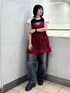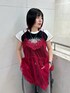 レッド×ブラックのロックテイストコーデ❤️🔥 【キャミ】 1枚でレイヤードスタイルが決まる、ランジェリーキャミソールがSETになったTシャツ! ギャザー使いでふんわり立体感のあるランジェリーのデザインと、メタリックなロゴプリントがこだわりのポイントで、それぞれ別々の着用でも存在感のある優秀アイテムです。 チュニック風に着用出来るサイズ感なので、着こなしの幅が広がります! 【Tシャツ】 アメリカ合衆国ロサンゼルスで1989年にコートニー・ラブを中心に結成されたロックバンドのHOLEとのコラボレーション! コンパクトなボディに大きくHOLEの初期のロゴを使用したインパクトのあるラグランTシャツです。 後ろにもPRETTY ON THE INSIDEのグラフィックが大きくプリントされており、前も後ろもCOOLなデザイン。 グラフィックに合わせたボディの配色や、裾ステッチもポイントです! 【パンツ】 スーパーワイドシルエットがトレンド感MAXなペインターパンツ。 大胆なサイズ感とこなれたシルエットでオシャレ上級者になれます。 夏の暑いシーズンにもピッタリな色落ちの加工がポイントです! 分厚すぎないデニム素材なのでオールシーズンで着用して頂けます。 身長161センチでSサイズ着用