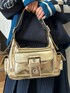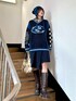 トレンドのスクールガール風コーデ💙 【ニット】 身長161cmでお尻隠れる丈感。 トレンドのスポーティグラフィックをジャガードで表現したVネックニットプルオーバー💙 ヒップが隠れるルーズなサイズ感とバックスタイルのナンバリング、リブの配色ラインデザインが存在感抜群です❤️🔥 1枚でトレンド感MAXなコーディネートに仕上げてくれます。 ミニボトム×ロングブーツを合わせたチュニック風の着こなしがおすすめ✨ プリーツスカートやチュール、レーススカートを合わせた甘辛MIXスタイリングはグッと今っぽくなります! 【スカート】 身長161センチで膝丈。 左右差をつけたラップスカート風デザインがこだわりのプリーツスカート🧑🎓 サイドのベルトデザインでエッジを効かせた他には無いこだわりのアイテムです。 裾のアシメデザインが軽さを出してくれるので、ルーズシルエットのニットや裏毛トップスと合わせてもすっきりとバランス良く着られます◎ 今季はスポーティなアイテムとのMIXスタイリングや、ライダースジャケットやMA-1などのメンズライクなアイテムとのスタイリングがおすすめです🫶 【ブーツ】 今季注目のエンジニアブーツは、使い込んだようなヴィンテージライクな風合いの合皮を使用しています。 取り入れるだけでトレンドスタイルが完成するマストアイテム💕 ミニボトムは勿論、ミディ丈のスカートとの合わせもおすすめ◎ レースやシフォン素材を使用したエレガントなアイテムとのスタイリングが特に今季らしいトレンドスタイルに🎀 【バッグ】 トレンド感MAXなメタリックバッグ✨ フロント、両サイドの立体ポケット使いが高級感とトレンド感を演出してくれます。 コンパクトなサイズ感ながら、荷物がしっかり入るのも嬉しいポイント!