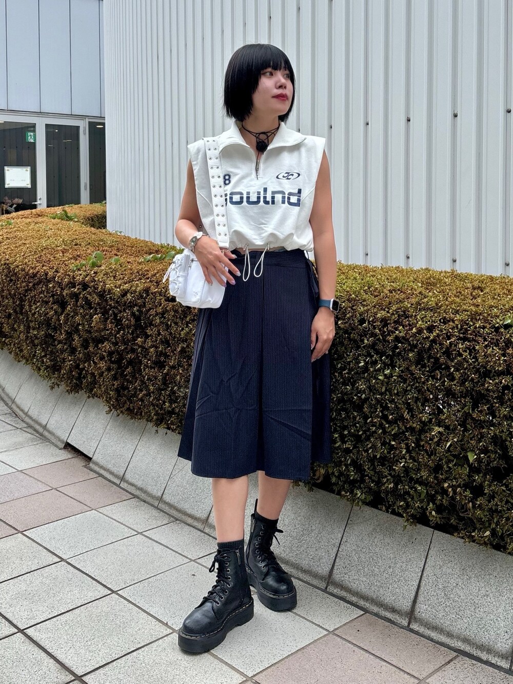 スポーツミックスコーデ 【トップス】 トレンド感のあるスポーティなデザインのトップスです! ハーフジップやドロストのデザインとメタリックプリントもポイント!! 身幅も広くゆったり着用できます。 【スカート】 注目トレンドのニーレングススカート! スクールムード漂うピンストライプがポイント✨ ロマンティックになりすぎない太めのプリーツと、ラップスカートならではのリボンデザインで抜け感を演出🎀 ウエスト内側ボタンの調節で、ジャストウエスト、ローウエストでの着用が可能なので合わせるトップスのシルエットやレングスに合わせて着こなしをチャンジ出来るのもこだわりのポイントです!