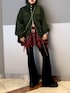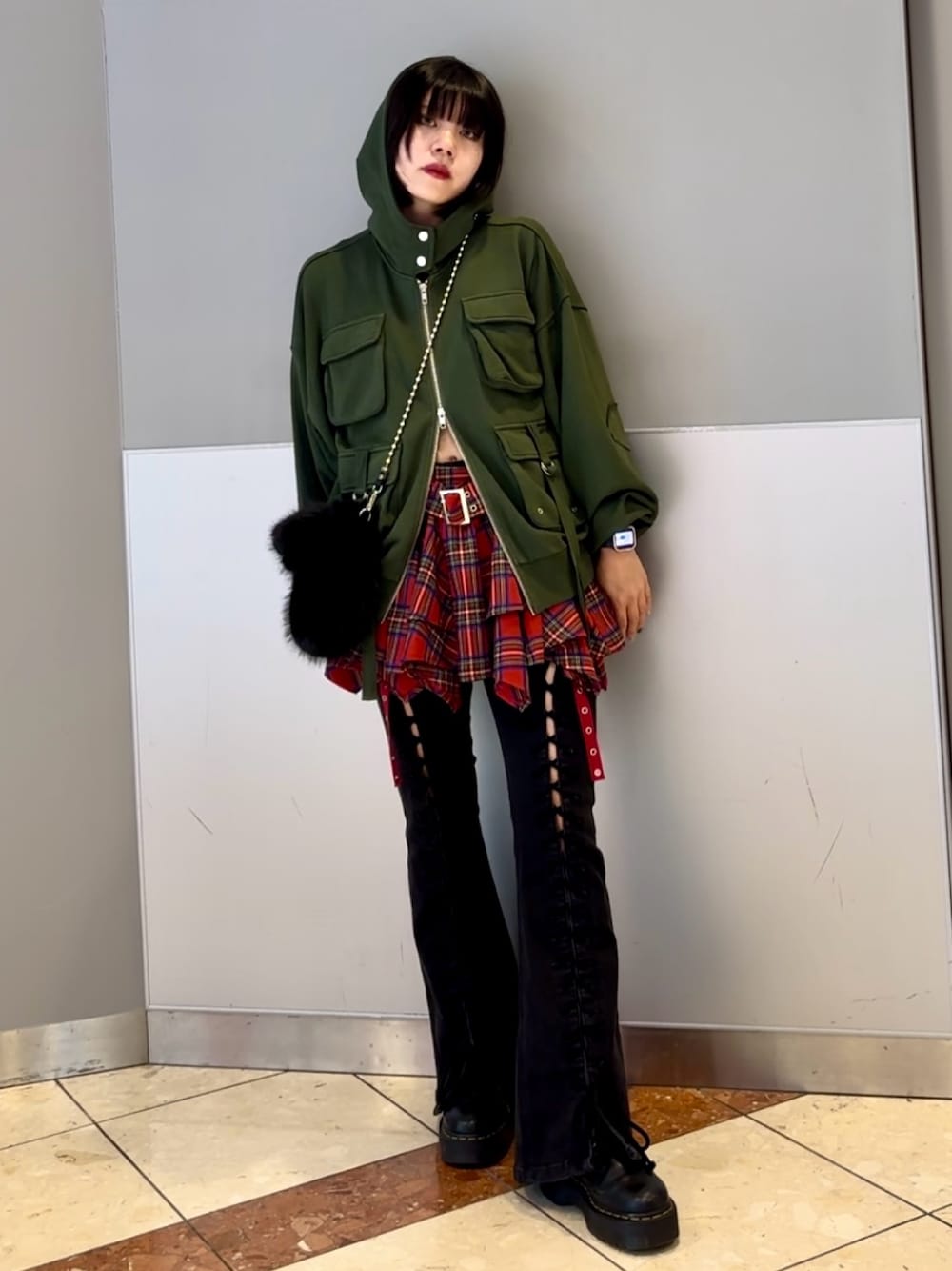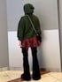 個性派ミリタリーコーデ❤️🔥 【パーカー】 大きなフラップポケットのデザインがハードな印象のスウェットフーディー❤️🔥 着古したような色褪せた加工感で、ヴィンテージ感のあるルックスが決まります! ボリューム感のあるルーズなシルエットにこなれ感があり、様々なアイテムとマルチに着回せるパーカーです。 フロントは上下逆開ジップなので、裾からジップを開けてインナーを見せて着用も可能です🙆♀️ 身長161センチでお尻ギリギリ隠れるくらい。 【スカート】 トレンドのハードなハトメディティールが、可愛らしいフレアミニデザインを中和させ、エッジの効いた印象に仕上げています🌟 丈の長いアイテムの裾から少し覗かせるスタイリングがおすすめです🫶 ローライズ仕様で、インナーパンツ付きです。 【パンツ】 161センチでMサイズ着用。 大胆に入ったレースアップデザインが他には無いデザインデニム。 ストレッチのきいたデニム素材を使用したフィットフレアシルエットが、脚のラインをきれいに見せてくれる美脚パンツです! カジュアルなカットソー合わせもぐっとハイセンスなスタイリングに仕上げてくれる優秀アイテムです✨ 【bag】 コンパクトなサイズ感が使いやすく、どんなスタイリングにもマッチしてくれるファーBAG。 ショルダーバッグ用のボールチェーンが付属しており、2WAYで使用できるのも嬉しいポイント◎ いつものコーディネートにプラスするだけで、一気に秋冬ムードが演出出来ます。