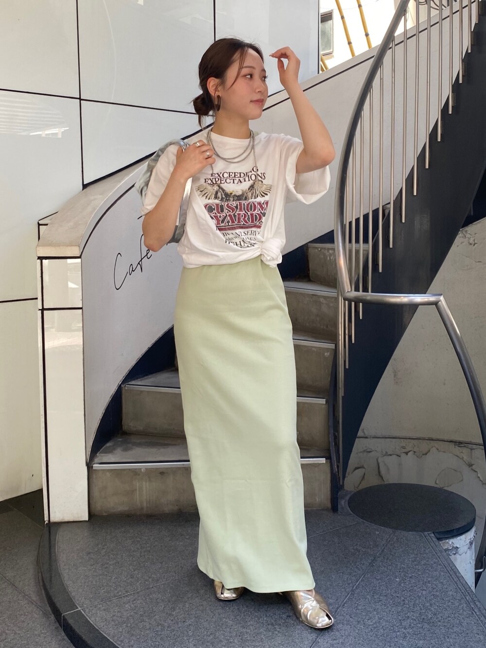 佐々木悠(Ungrid)のワンピース「オーガビッツアメスリテレコフィットワンピース」を使ったコーディネート