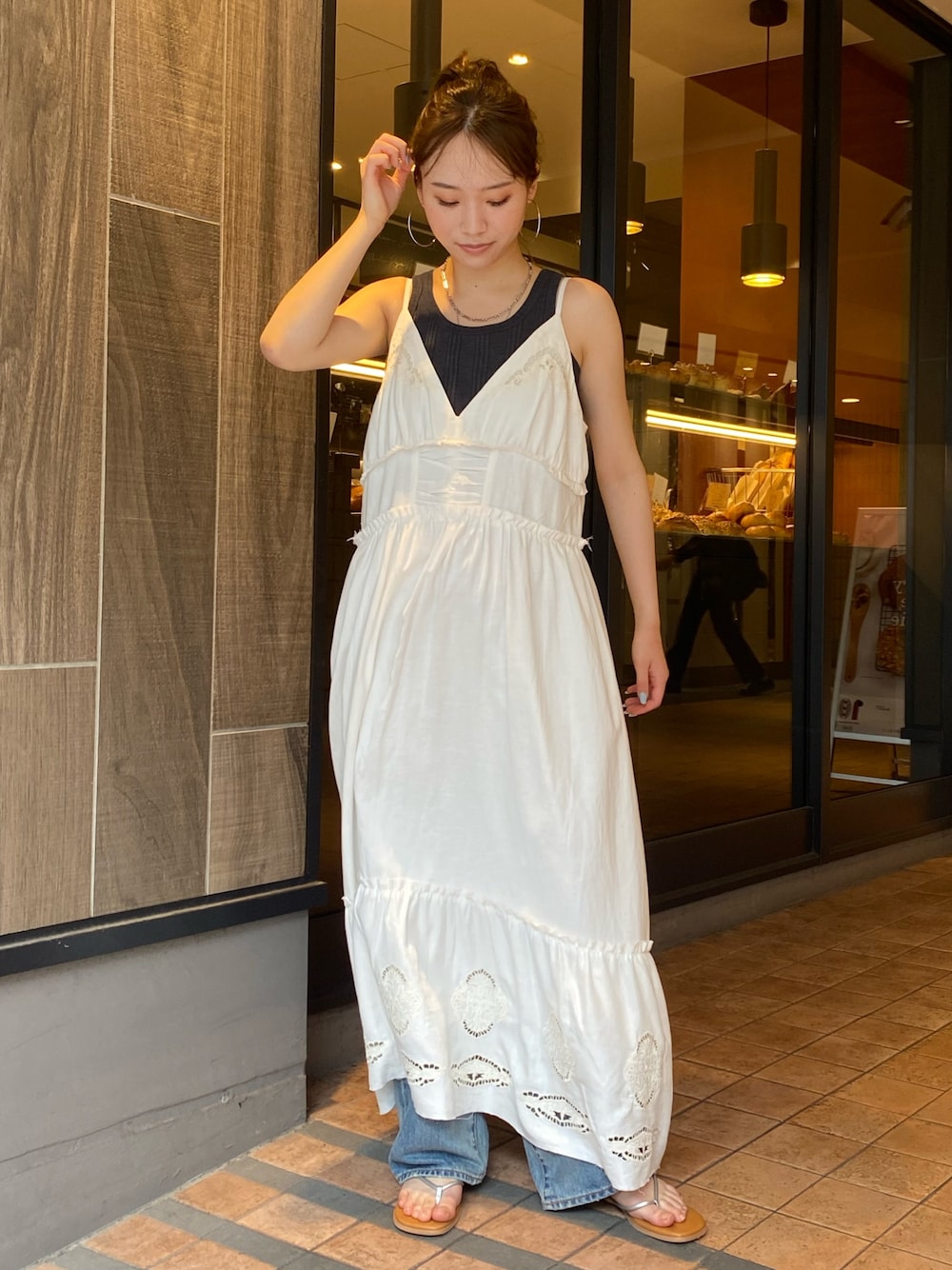 佐々木悠(Ungrid)のワンピース「カットワークデザインキャミワンピース」を使ったコーディネート