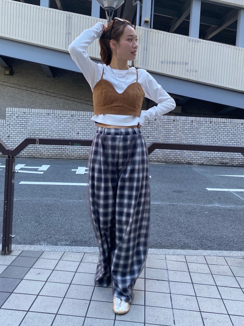 【パンツ】 リアルバイのシルエットが可愛いチェックパンツ! トレンド感のあるチュールがついたパンツで一枚でオシャレ見え✨今季のおすすめアイテムです! 【ビスチェ】 トレンド感のあるスウェード素材のビスチェ❤️ 半袖のTeeの上から重ねてもよし、タートルのニットの上から重ねても可愛い万能アイテムです! 【ロンT】 フィンガーホール付きで程よいバックオープンが可愛いロンT✨ 定番使いしやすいです🙋🏾♀️ 【シューズ】 履くだけでコーデがオシャレ見え!のリアルバイのフラットシューズ🥿🤎 普段23.5センチでMサイズ購入しております!