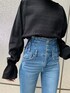 ハイウエストデニムとショートトップスの相性やっぱり◎ですね❤︎デニムはレースアップデザインがある事で細見え効果&オシャレ感UPします!トップスはちょうどくびれ辺りの丈なのでインしなくても着用出来ます!袖口もギャザーパフになっているので女性らしさがとても可愛いですね♩春先に向けてぜひチェックしてみて下さいね❤︎