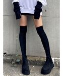 橘優希(EMODA)のブーツ「ローヒールフィットロングブーツ」を使ったコーディネート