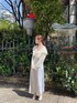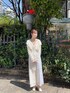 フェミニンなワンピースコーデ 【ワンピース】floral柄とcheck柄を組み合わせた、デザイン性の高い1枚。 レイヤード次第で、さまざまな着回しを楽しめます♡ 【インナー】透け感のあるメッシュトップスは、春らしく軽やかでコーデのポイントになります。さらっとしてストレッチも効いているので、着心地も抜群です◎ 【カーデ】フェミニンなフリルが涼しげなレースカーデ。上品で大人っぽく、短めの着丈でスタイルアップ効果も! 【シューズ】繊細なレース生地をバイカラーに配置♡23.5㎝でMサイズ着用です。