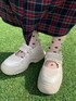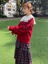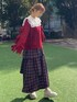 秋色コーデ🍂 【ブラウス】 顔周りを華やかに見せてくれるセーラーカラーのブラウス。 レイヤードに重宝する、すっきりとしたサイズ感です◎ 【カーディガン】 袖に並んだリボンが可愛らしいカーディガン🎀カットアウトデザインになっており、トレンド感も◎ 【スカート】 ふわふわのボリューム感が可愛らしい、ティアードスカート。 秋らしいチェック柄が様々なコーデに馴染みやすく、着回し力抜群の1着◎ 【シューズ】 フリルとボリュームのあるソールの組み合わせが可愛らしいスニーカー👟 軽くて歩きやすいので、長時間のお出かけにもおすすめです