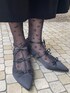 大人ガーリーコーデ 【トップス】 小花柄が可愛いベロア素材のインナートップスを合わせ、vintage likeなコーデに💐 フィンガーホール付きなので、袖口のレイヤードも楽しい1枚です。 【ワンピース】 艶のあるベロア生地がフェミニンなキャミワンピース。 肩紐のリボンで丈感の調節も可能です🎀 更に、下の段のリボンは取り外しができるのでシンプルな着こなしもおすすめです◎ 【シューズ】 3つ並んだリボンが可愛らしいパンプス🎀 低めのヒールで歩きやすいのも嬉しいポイントです。
