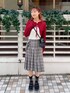 レトロコーデ 【トップス】 メロウ加工やギャザーが寄った袖にデザイン性があり、1枚で着てもスタイリングが決まるカットトップスです。 柔らかい素材で着心地も抜群◎ 【カーディガン】 春らしいカラーのニットボレロ🧶 短めの着丈とすっきりとしたシルエットで、スタイルアップ効果抜群◎ 【スカート】 トレンドのミディ丈スカート♡ 華奢なベルト付きなので、チェック柄でもカジュアルすぎないのがポイント。 166cmでちょうど膝下にくる丈感。ハイソックスやルーズソックスなど、靴下合わせも楽しい1枚です🧦 【バッグ】 取り外し可能なコインケースが付いたショルダーバッグ。 コーデのワンポイントにぴったりな、可愛らしいハート型🤍 【シューズ】 フリル付きのストラップに、クリアソールを組み合わせたメリージェーン。 さまざまなスタイルに馴染みやすいパステルカラーです🤍