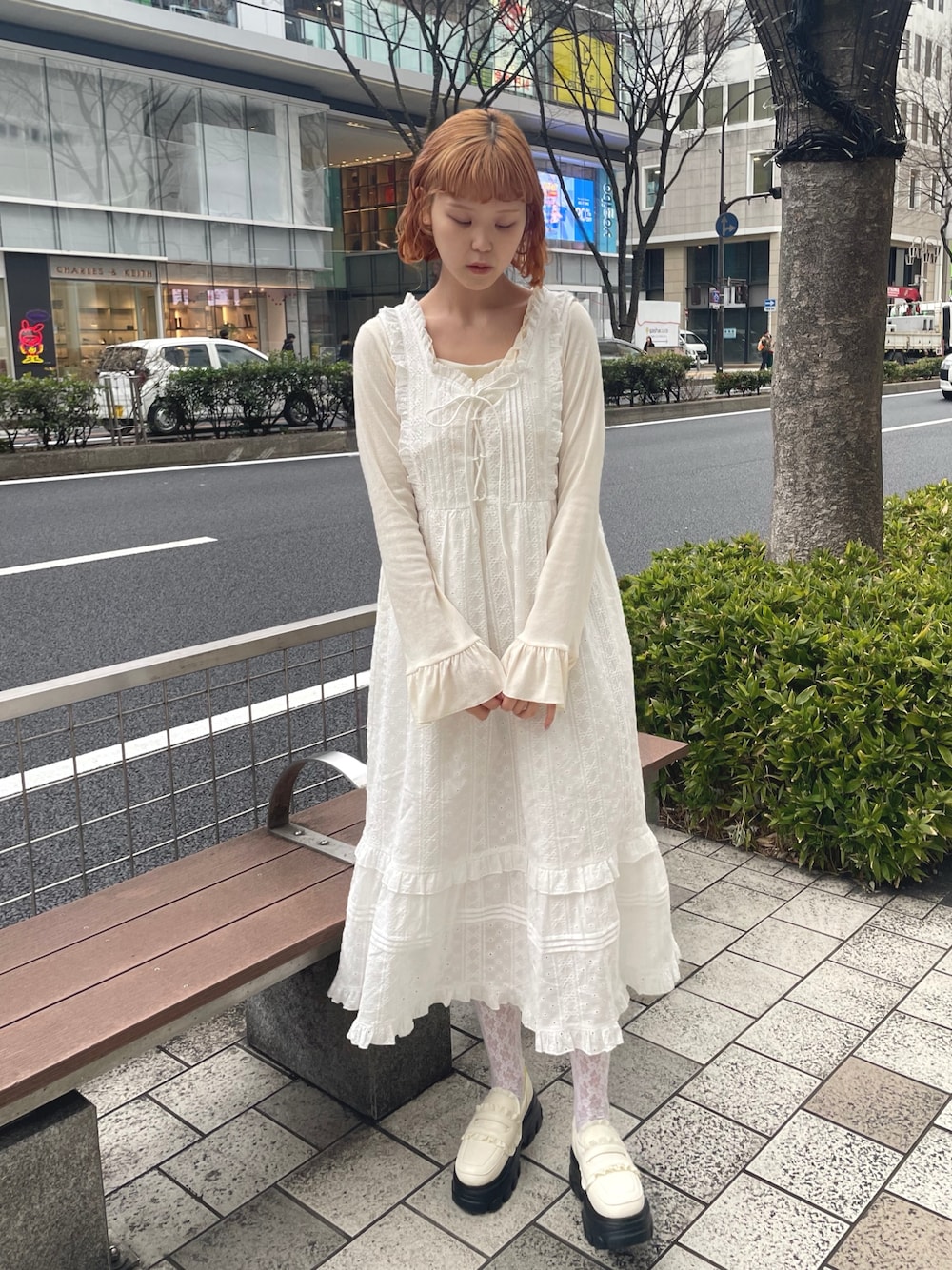 (ワンピース) コットンレースの春らしいワンピース☘️ さまざまなレイヤードが楽しめる、ゆったりシルエット。 (トップス) たっぷりフリルや、ギャザーリボンがフェミニンなトップス。 顔周りをすっきり見せ、アクセサリー合わせも楽しめる1枚。袖のフレアデザインも女性らしい雰囲気に。 (シューズ) 中綿が入った、ぷくっと可愛いローファー👞 丸いシルエットにフリルを飾ったガーリーな一足。 軽くて歩きやすいので、長時間のお出かけにもぴったりです⚪︎