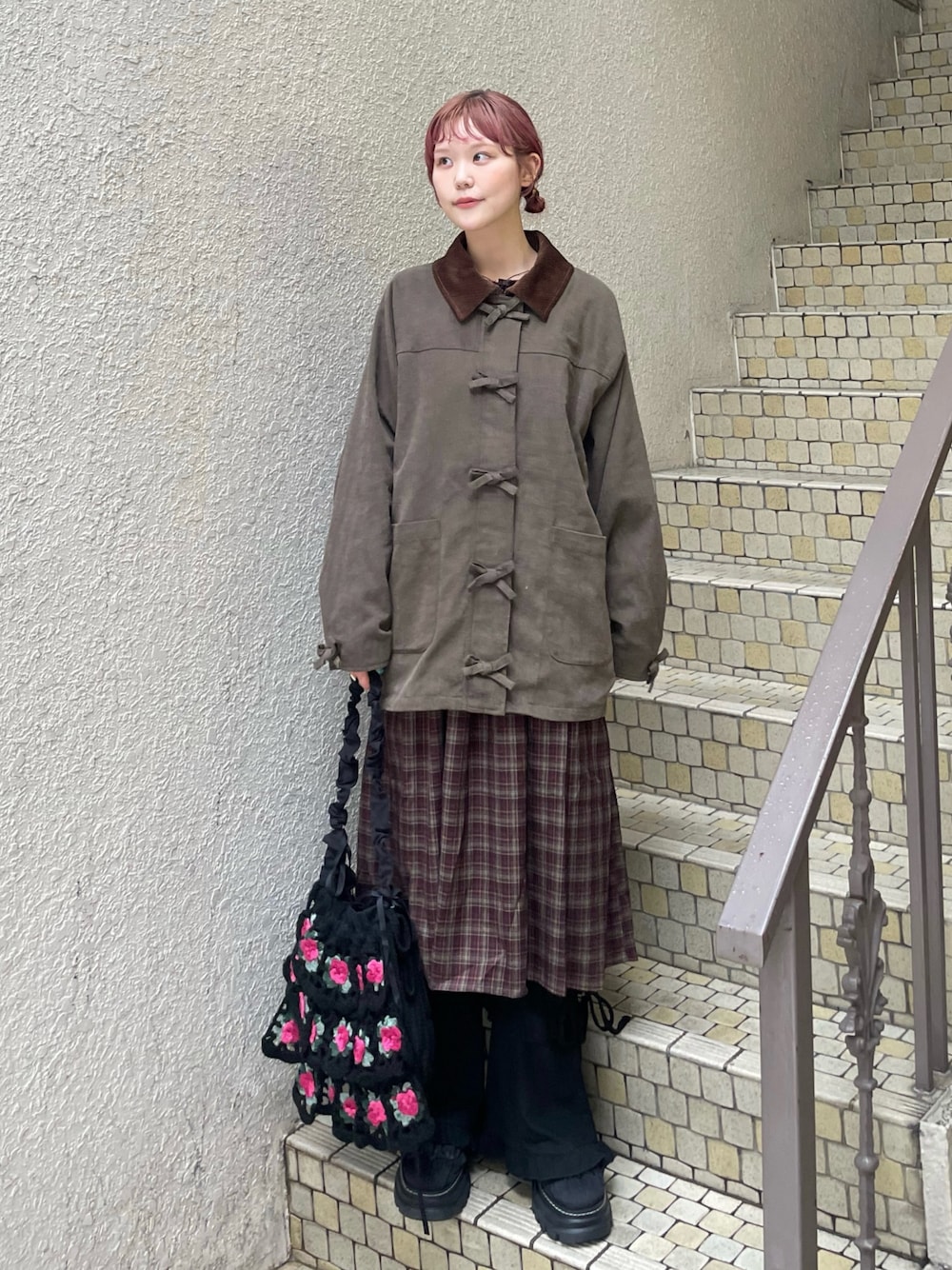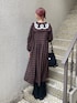 (ワンピース) 秋らしいカラーとチェックのデザインがポイント。1着でコーデがばっちり決まる、主役ワンピース🍂 襟をのデザインをメインに、カーディガンやスウェットと重ね着するのもおすすめです。 (ジャケット) 秋らしいカラーのハンティングコート🍂 ヒップが隠れるゆったりとしたサイズ感、たくさん着込めて冬まで着用できます⚪︎ (パンツ) 華やかな足元のフリルは、コーデのアクセントに! レッグウォーマーのようなボリューム感が可愛らしい♡ (バッグ) merry jennyならではの、クロシェデザインが可愛いポシェット🌹 ざくざくと編みたてたお花がポイント。コーデに一癖プラスできる、おしゃれアイテムです♡ (シューズ) たっぷりギャザーにリボンを飾った、merry jennyらしいデザインのサボシューズ👞 軽くて長時間でも疲れにくく、着脱しやすいのもポイント。秋らしく、トレンド感もばっちり!🍂