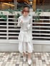 トップス、スカート共にトレンド感のあるレイヤードコーデが簡単に叶う、今期マストアイテム!オールホワイトでまとめて儚げな春コーデにしました🍀⟡ モコゾウちゃんのナップサックでひとくせプラス!🐶