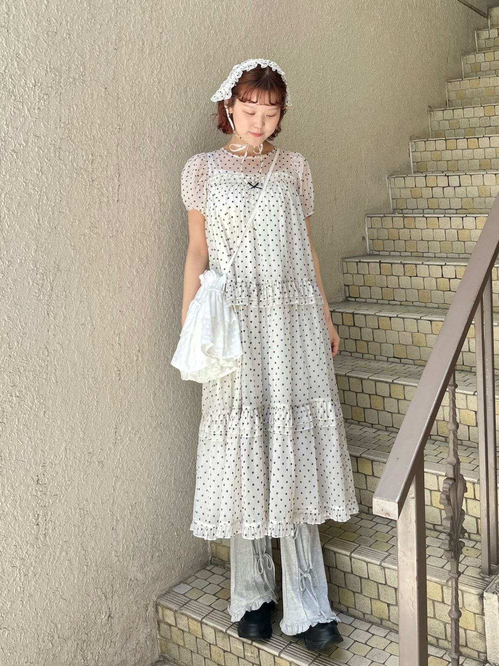 1枚で様になるワンピースは、薄手で涼しいので、暑い夏でも快適な着心地🍃ドットのように散りばめられたお花のフロッキープリントが目を惹く、唯一無二のデザインです♡ パンツやインナーを合わせたレイヤードスタイルも楽しめるので、自分らしい着こなしが広がり、オールシーズン着回せるのもポイント。 おそろい生地のヘッドドレスをプラスすれば、より特別感のあるコーデに♡ ブラックのシューズで全体を引き締め、コーデにまとまりを持たせました⚪︎