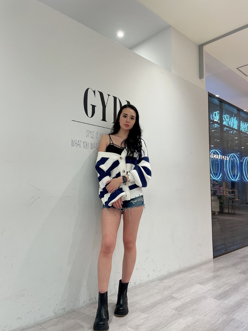 《カジュアル春コーデ🌸》 【tops】ルーズなシルエットで太ボーダーが印象的の春もってこいボーダーLOOSEカーディガン❤︎ 袖口先と裾端にグラインダー加工が施されており一枚でお洒落にきまります✨【bustier】毎年人気のバインダービスチェ❤︎パッド付きなのでインナーでの着用や一枚でも着用できる超万能アイテム✨【pants】GYDAデニムショートパンツ定番のBACK RIPPEDデニムショートパンツ❤︎SEXYなダメージ加工・BACK RIPPEDがGYDAらしい1本になっています✨ 【shoes】足元にボリュームの出るトラックソールブーツ🥾GYDAらしく更にインウェッジで高さを出し、すっきりと見えるようにしているのがポイントです◎