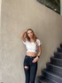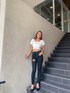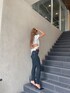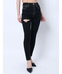 rina(GYDA)のデニムパンツ「ハイウエストステッチカラーダメージスキニーパンツ」を使ったコーディネート