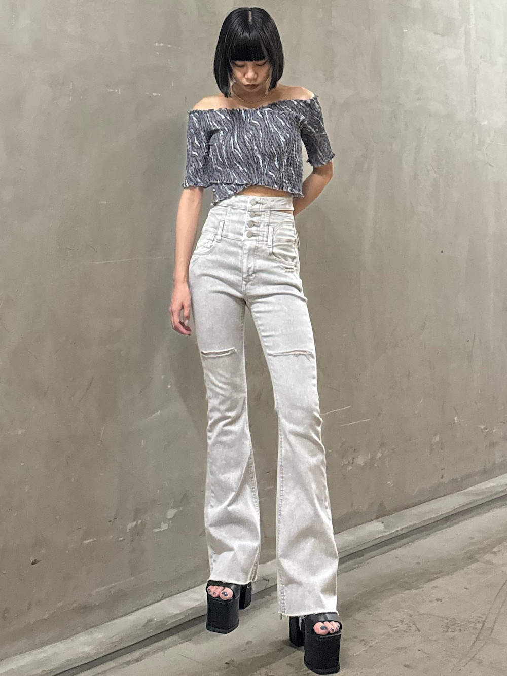 【トップス】締め付けられすぎず伸びるのでしっかりフィットしてオフショルでも上がってこないので可愛いまま着れます🫶🏻️🤍 【デニム】ウエストと足のカットデザインが可愛いです👍🏻 ̖́-ストレッチ素材なのでレギンス感覚で夏でも履きやすいデニムです! 丈長めでハイウエストなので美脚効果抜群🙆♀️156cmXSsize着用です! 【サンダル】ダブルバンドでデザインオシャレ♡つま先広めなので甲の部分が広め好きな方履きやすい厚底サンダルです👍🏻 ̖́- 普段24cmでMサイズが丁度良かったです!