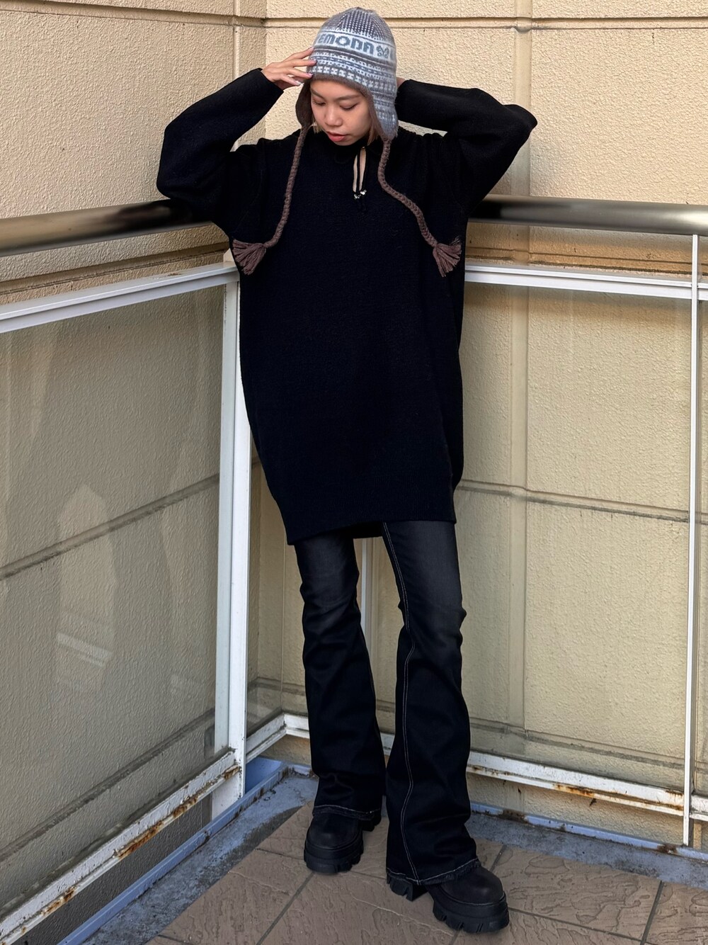 【ニット】ワンピース風に着れるくらいオーバーサイズです!中にハイネックトップスやロンTの重ね着も可愛いです︎👍🏻 ̖́- 【デニム】大人気スーパーハイウエストフレアデニム🫶🏻´-デザインがシンプルなのでジャンル幅広くスタイリングしやいです!ストレッチ感がレギンスのように柔らかいのでかなり履きやすい美脚デニムです👍🏻 ̖́- 【ブーツ】ナチュラルな厚底で脚しっかり盛れます!ブーツ丈も若干長めですがスッキリ見せてくれます︎👍🏻 ̖́-普段24cmでMサイズ着用です🙆♀️