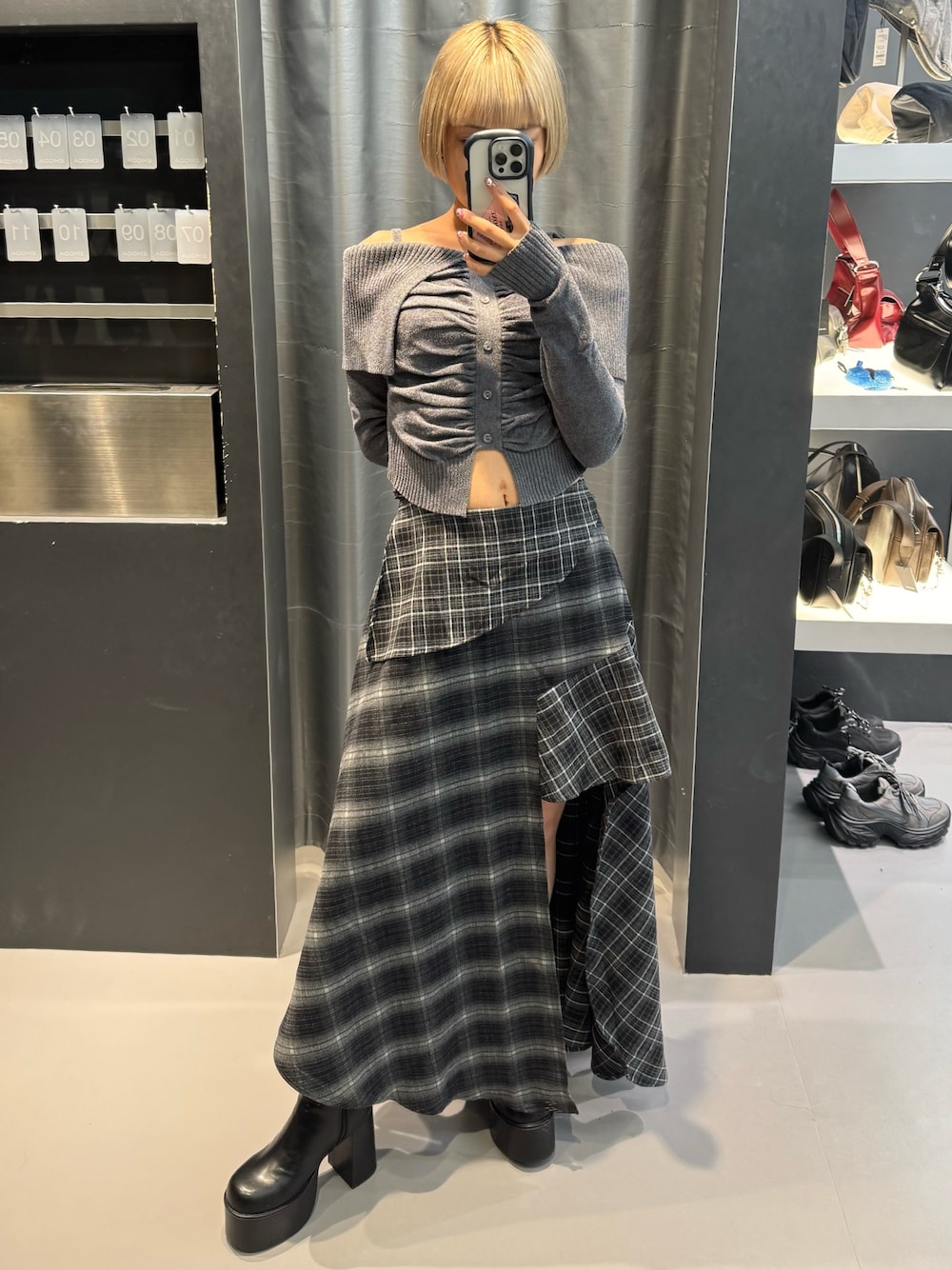【トップス】ベロア素材がフワフワでカワイイです︎👍🏻 ̖́-ストラップが付いているのでオフショルが上がってきたり下がってきたりなく着れます! 【スカート】ひらっとする少しボリュームはありますがスリットが入ってるのでスッキリ見えます︎👍🏻 ̖́-シンプルなトップスでもおしゃれに着こなしやすいデザインです! 【ブーツ】ナチュラルな厚底で脚しっかり盛れます!ブーツ丈も若干長めですがスッキリ見せてくれます︎👍🏻 ̖́-普段24cmでMサイズ着用です🙆