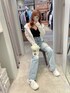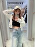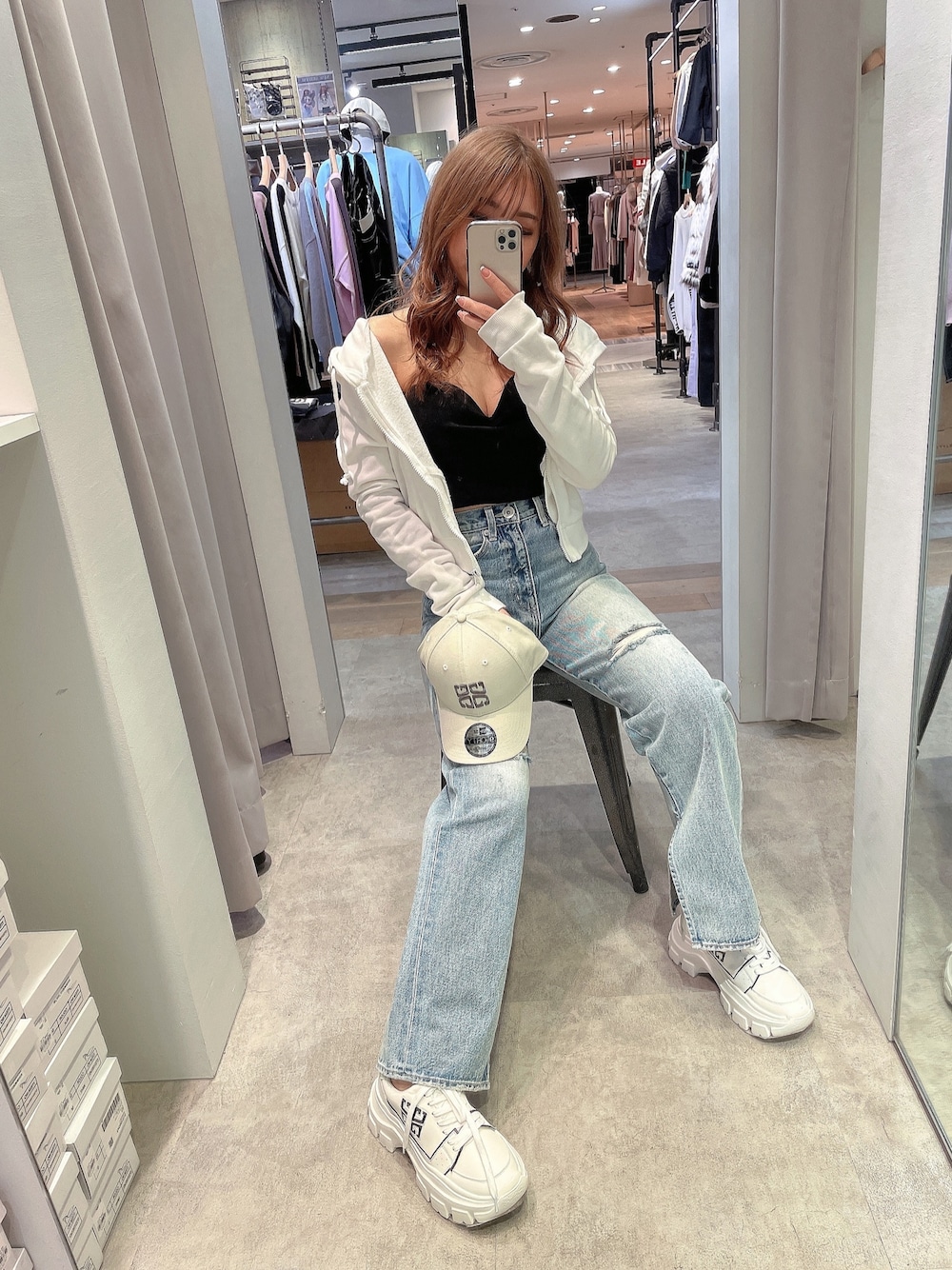 ストレートダメージデニムが主役のコーデです♡ ストレートデニムはダメージも程よく内側にスリットが入ってるのもポイントです! ハイウエストなのでショートパーカー合わせでキャップ・スニーカー合わせなのでカジュアルになりすぎないようにリブベアビスチェで合わせました♡ スタイルアップ抜群コーデです😊