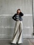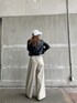 大人カジュアルコーデ♡ トップスのボーダー柄とパンツのサイドラインがリンク感あってオシャレさんコーデになります♡ ライダースを羽織って春コーデに! トップスは袖の取り外しができるので夏まで着ていただけます! デニム合わせもオススメです。