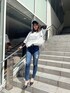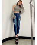 ルーズシルエットのTシャツはデニムにinして今年トレンドのシアートップスをレイヤードしてみました! デニムはハイウエストで履きやすくダメージも入りすぎておらず程よいダメージなのでデニムに挑戦してみたい方にもぴったりな1枚となっております。 ルーズシルエットのTシャツはアウトしてきてショーパン合わせでワンピ風に着るのもオススメです♡