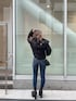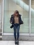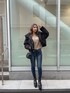トレンドのキラキラニットコーデ♡ 着用しているショートダウンは袖を取り外してベストとしてもご着用いただけます! アシメントリーデザインのデニムはショート丈トップス合わせでウエストデザインを見せるのがおすすめです!