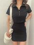 arisa(GYDA)のワンピース「two pieceレイヤードテレコワンピース」を使ったコーディネート