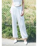 カジュアルセットアップコーデ 【ジャケット】 柔らかい素材のデニムのジャケットです。gydaらしいダメージもポイント!ショート丈なのでハイウエストデニムと合わせるのもおすすめです。 【ビスチェ】 フロント前後差のあるワッフル素材のビスチェです。しっかりとしたパット付きなので1枚で着用可能。後ろにsquare gydaの同色刺繍があるのもポイント。 【パンツ】 ワッフル素材のセットアップのパンツで落ち感のある素材が細見え効果あり、ワッフル素材なので夏でも涼しく着用できます。足首がゴムで絞られているデザインなので低身長の方も丈感気にせず着用できます! 【ミュール】 gyda定番のポインテッドミュールです。 23.5㎝でSサイズ着用。