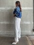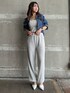 カジュアルセットアップコーデ 【ジャケット】 柔らかい素材のデニムのジャケットです。gydaらしいダメージもポイント!ショート丈なのでハイウエストデニムと合わせるのもおすすめです。 【ビスチェ】 フロント前後差のあるワッフル素材のビスチェです。しっかりとしたパット付きなので1枚で着用可能。後ろにsquare gydaの同色刺繍があるのもポイント。 【パンツ】 ワッフル素材のセットアップのパンツで落ち感のある素材が細見え効果あり、ワッフル素材なので夏でも涼しく着用できます。足首がゴムで絞られているデザインなので低身長の方も丈感気にせず着用できます! 【ミュール】 gyda定番のポインテッドミュールです。 23.5㎝でSサイズ着用。
