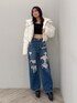 カジュアルコーデ 【アウター】 シンプルなショートダウンです。リアルダウン90%入っており、保温性抜群の暖かく、軽いダウンなのでこれを1枚もっているだけで冬を乗り切れちゃいます。シンプルなデザインなのでどんなコーデにも合わせやすく、袖の取り外しが可能なのでベストとしてもご着用いただけ、秋冬春と長いシーズン使えます。フード取り外し可能。 【トップス】 ベロア生地でビジューが全体に散りばめられた華やかなトップスです。タイトシルエットなので綺麗目コーデで着こなせます! 【デニム】 ダメージにレースパッチデザインが入っているワイドデニムです。レースでトレンド感を取り入れられ、いつもと違う雰囲気では着こなせます。レースの甘さとデニムのダメージで甘辛ミックスなコーデが仕上がります。155センチSサイズ着用。 【ブーツ】 毎年人気のシンプルな厚底ブーツです。 シンプルなデザインなのでどんなコーデにも合わせやすく厚底なので歩きやすいです。23.5センチMサイズ着用