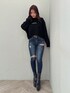 デニムコーデ 【トップス】 ロゴ入りのルーズニットトップスです。サイズ感が少しオーバーサイズで長すぎない丈感なのでどんなボトムス合わせもできます。カジュアルにデニム合わせがおすすめです。 【デニム】 大人気のSIDE RIPPEDスキニーデニムパンツです。太ももダメージがポイントです! 国産デニムなので履けば履くほど柔らかかくなり履きやすくなります。155㎝Sサイズ着用。 【ブーツ】 毎年人気のシンプルな厚底ブーツです。 シンプルなデザインなのでどんなコーデにも合わせやすく厚底なので歩きやすいです。23.5センチMサイズ着用
