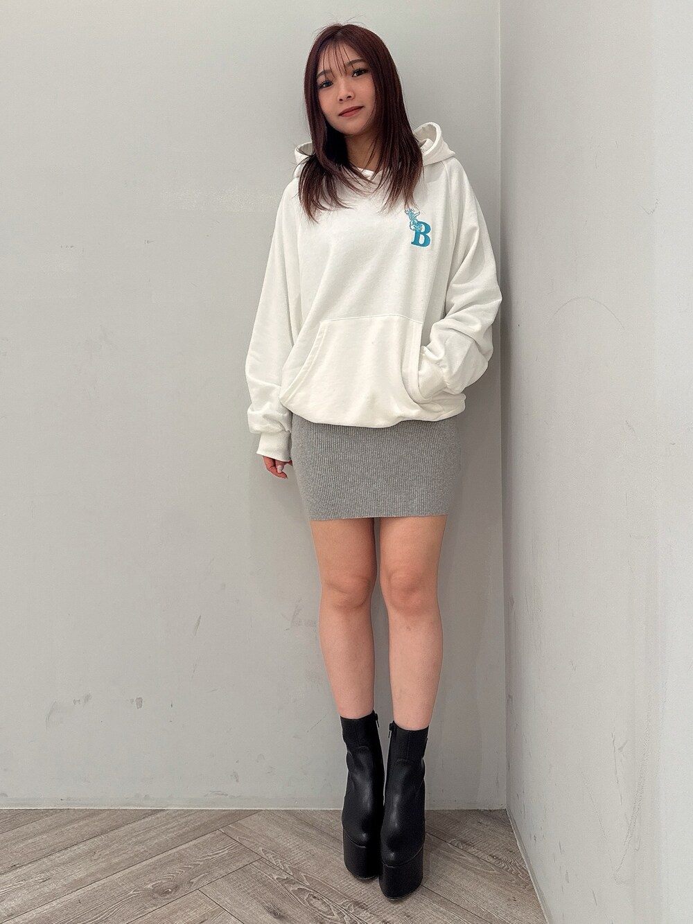 【パーカー】 大人気のバニーちゃんパーカーです。前はシンプルなので普段使いしやすく後ろにインパクトがあるパーカーです。オーバーサイズなので低身長の方はワンピース風でのご着用もおすすめです。 【ブーツ】 GDロゴのmoldデザインが入っているショートブーツです。厚底なので歩きやすくシンプルなデザインなのでワンピースコーデ、デニムコーデとどんなコーデにも合わせやすいです。23.5センチSサイズ着用。