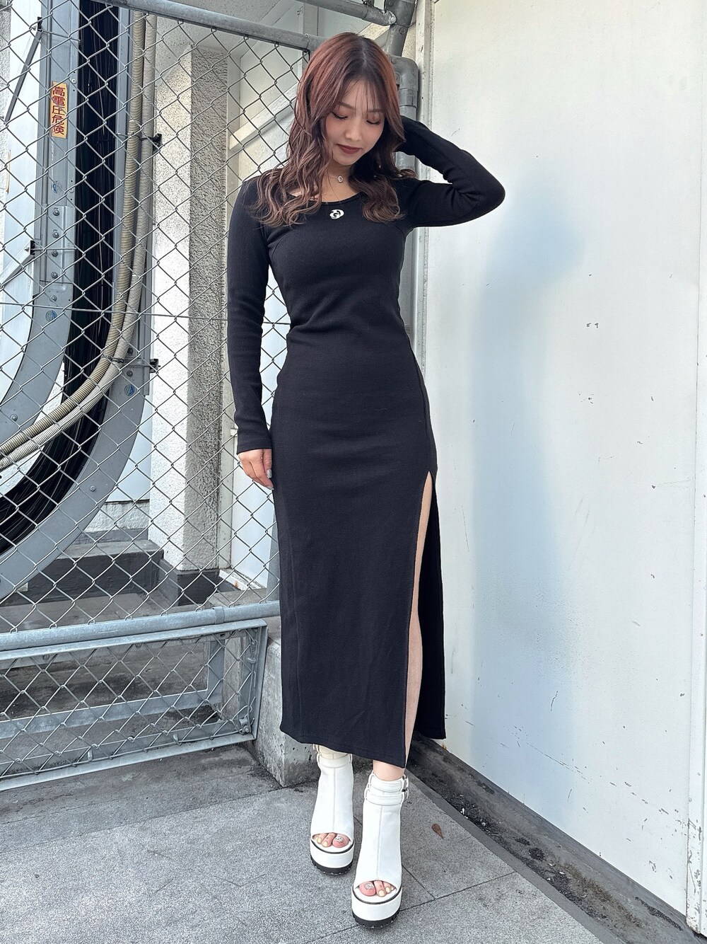arisa(GYDA)のワンピース「GD BACKクロスバインダーテレコロングワンピース」を使ったコーディネート