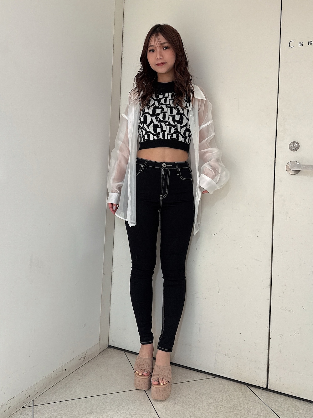 【シャツ】シンプルなオーバーシアーシャツです。光沢感があるシアーでシンプルなコーデに羽織っても華やかに仕上がります♡デニムコーデやワンピコーデ、色んなコーデに着れるので1枚持っていると万能に使えるシャツです! 【トップス】 アメスリのニットトップスなので少し綺麗目、大人っぽいコーデに仕上がります!ダメージデニム合わせで綺麗目カジュアルに着こなすのも🙆🏽♀️ 【デニム】 大人気ワンウォッシュスキニーデニムです。ストレッチが効いていて柔らかく履きやすいです。硬いデニムが苦手な方にもオススメ♡ 締め付けてくれるので美脚効果も抜群でダメージも入っていないのでデイリー使いできる万能デニムです。155㎝XS着用 【サンダル】 毎年大人気のコルクサンダルです。しっかりと安定感があり、前後高低差のない厚底なので足も疲れにくく、コルクデザインなので春夏にぴったりのサンダルです♡23.5センチSサイズ着用。