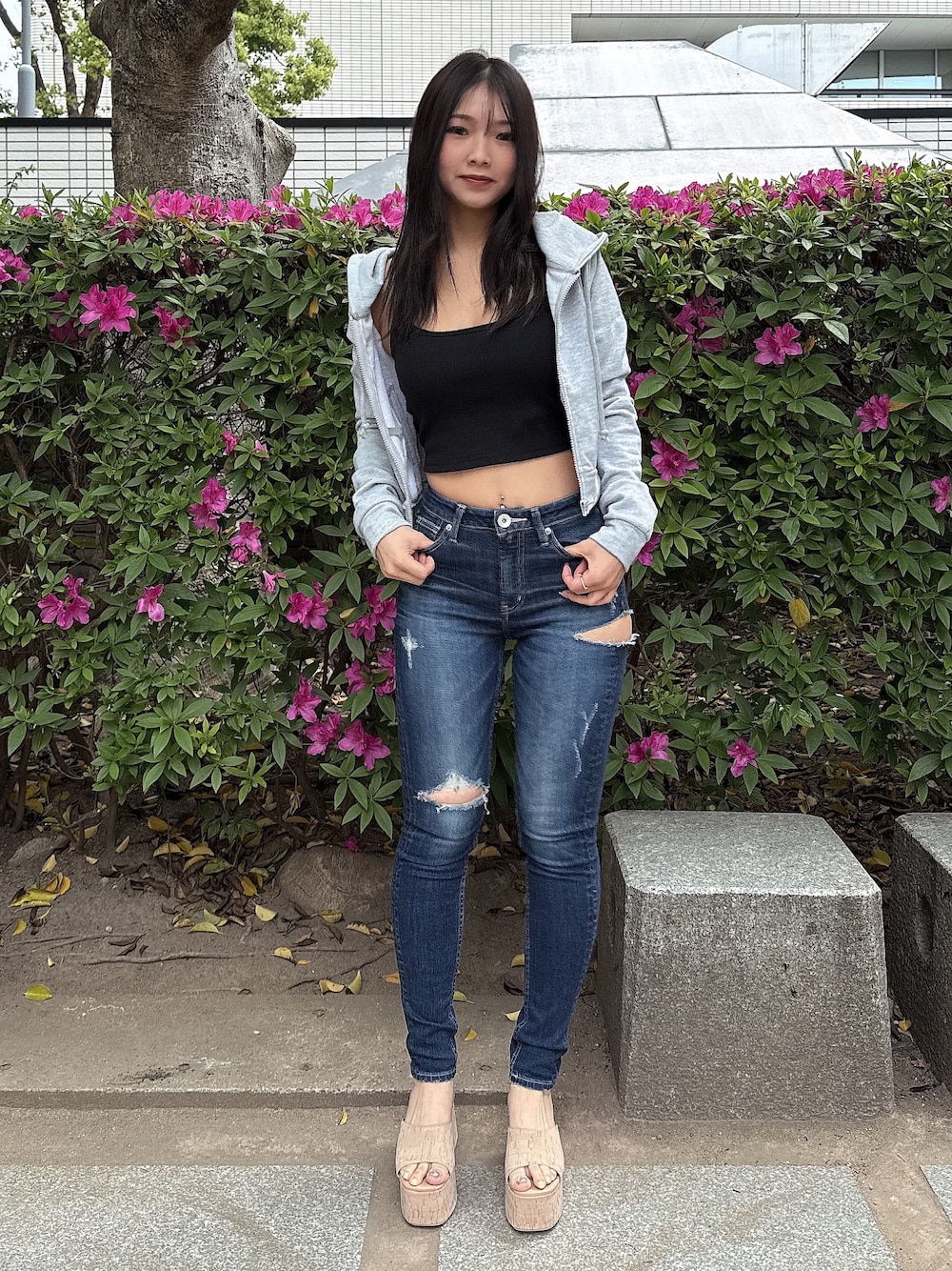 【パーカー】 後ろにラインストーンのgydaロゴがあり、生地にラメも入っているのでラフになりすぎずおしゃれに着こなせます。ショート丈なのでハイウエストデニム合わせがオススメです。 【デニム】 大人気のSIDE RIPPEDスキニーデニムパンツです。太ももダメージがポイントです! 国産デニムなので履けば履くほど柔らかかくなり履きやすくなります。155㎝Sサイズ着用。 【サンダル】 毎年大人気のコルクサンダルです。しっかりと安定感があり、前後高低差のない厚底なので足も疲れにくく、コルクデザインなので春夏にぴったりのサンダルです♡23.5センチSサイズ着用。