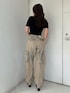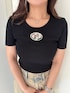 【トップス】 大人気のMOLDシリーズです。GDロゴの金具にストーンが付き更に可愛さもアップ。胸元の露出もあまり気にならずカジュアルに着こなせます。 【デニム】 トレンドのカーゴデニムです。スニーカーでカジュアルに着こなすことができ、サンダルやヒール合わせで綺麗目カジュアル合わせもオススメ。155センチSサイズ着用。 【サンダル】 毎年大人気のチャンキーサンダルです。ヒールは高いですが前後差がないため疲れにくく太めのヒールで安定感もあり歩きやすいです。23.5センチSサイズ着用。