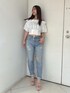 【トップス】 毎年大人気のブラウスです。前後2wayで着用でき、デニム合わせでgydaらしいカジュアルなコーデに仕上がります。 【デニム】 ダメージ入りのストレートパンツです。ストレートデニムなので広がりすぎず、スキニーのピッタリ感が苦手な方にもオススメ。綺麗目コーデに仕上がります。155センチSサイズ着用。
