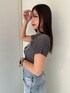 arisa(GYDA)のニット/セーター「GD two color schemeハーフスリーブニットトップス」を使ったコーディネート