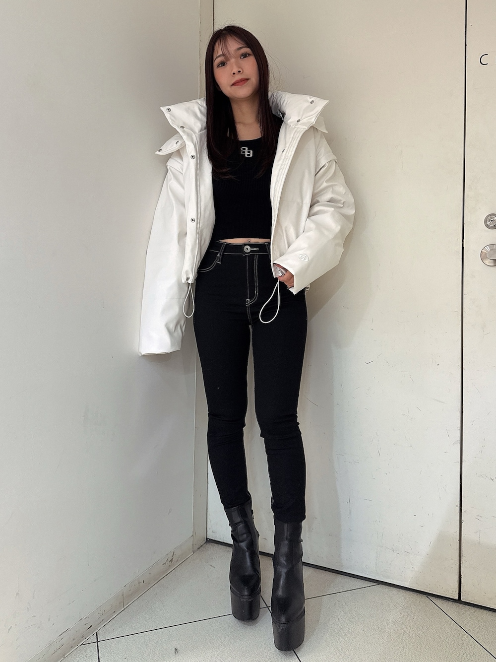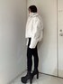 【アウター】 袖とフードが取り外し可能なレザーのダウンです。ダウン90%.フェザー10%と軽く暖かいので真冬での着用もピッタリです。袖を取り外して秋と春の着用も可能です! 【トップス】 真ん中にGGプレート入りのニットトップスです。シンプルなデザインなので一枚できるのはもちろん、アウターの中のインナーとしても着用できる万能トップスです!持っているとすごく使えます! 【デニム】 大人気ワンウォッシュスキニーデニムです。ストレッチが効いていて柔らかく履きやすいです。硬いデニムが苦手な方にもオススメ♡ 締め付けてくれるので美脚効果も抜群でダメージも入っていないのでデイリー使いできる万能デニムです。155㎝XS着用 【ブーツ】 毎年人気のシンプルな厚底ブーツです。 シンプルなデザインなのでどんなコーデにも合わせやすく厚底なので歩きやすいです。23.5センチMサイズ着用