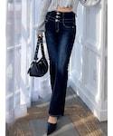 arisa(GYDA)のデニムパンツ「NEWハイウエストBACKクロスフレアパンツ」を使ったコーディネート