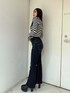 【トップス】 毎年大人気なシンプルなPOLOニットトップスです。丈が短くタイトなシルエットなのでハイウエストフレアデニム合わせがおすすめです!その他スカートやワイドパンツなどどんなボトムス合わせも合わせやすいです。 【デニム】 ウエストクロスデニムシリーズのフレアデニムです。程よいフレアの形なので足長効果抜群です。丈も長すぎないので低身長の方もスニーカー合わせで履けます。155センチSサイズ着用 【ブーツ】 毎年人気のシンプルな厚底ブーツです。 シンプルなデザインなのでどんなコーデにも合わせやすく厚底なので歩きやすいです。23.5センチMサイズ着用