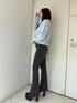 【トップス】 真ん中にsymmetry GYDAロゴ入りのニットです。細かいラメが入っているためキラキラと1枚で主役になるニットトップスです。丈も短すぎないのがどんなボトムスにも合わせやすくおすすめです! 【デニム】 シンプルなハイウエストフレアデニムの前面に細かいラインストーンが着いているため歩くたびにキラキラなるデニムです。シンプルなトップス一枚合わせても華やかに着こなせます。155センチ Sサイズ着用。 【ブーツ】 毎年人気のシンプルな厚底ブーツです。 シンプルなデザインなのでどんなコーデにも合わせやすく厚底なので歩きやすいです。23.5センチMサイズ着用